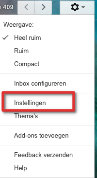 Zodra je ingelogd bent ga je naar het gereedschaps icoontje rechts bovenaan op de pagina, klik hierop en selecteer "Instellingen". Er klapt zich in dit geval een menu / dropdown uit welke eruit ziet als in het plaatje hieronder.